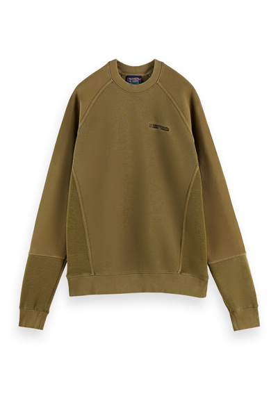 قميص من النوع الثقيل بياقة مستديرة هو المفضل في أي مجموعة. يتميز بتصميم مُرقع بألواح وأساور مضلعة وياقة
